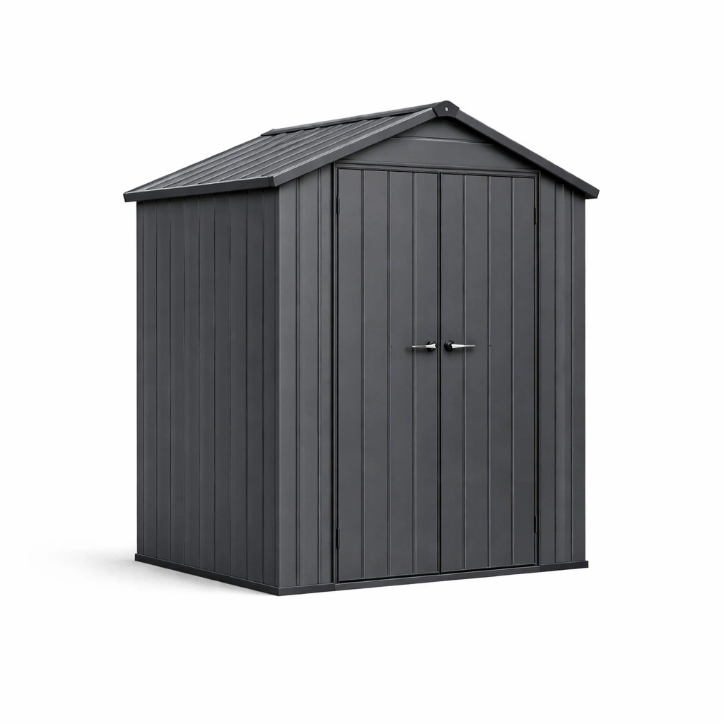Cobertizo de jardín de polietileno con puertas dobles gris 255x133x198 cm