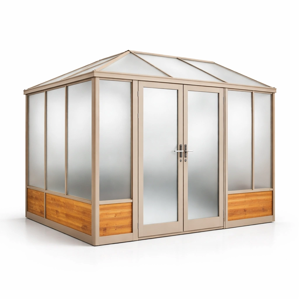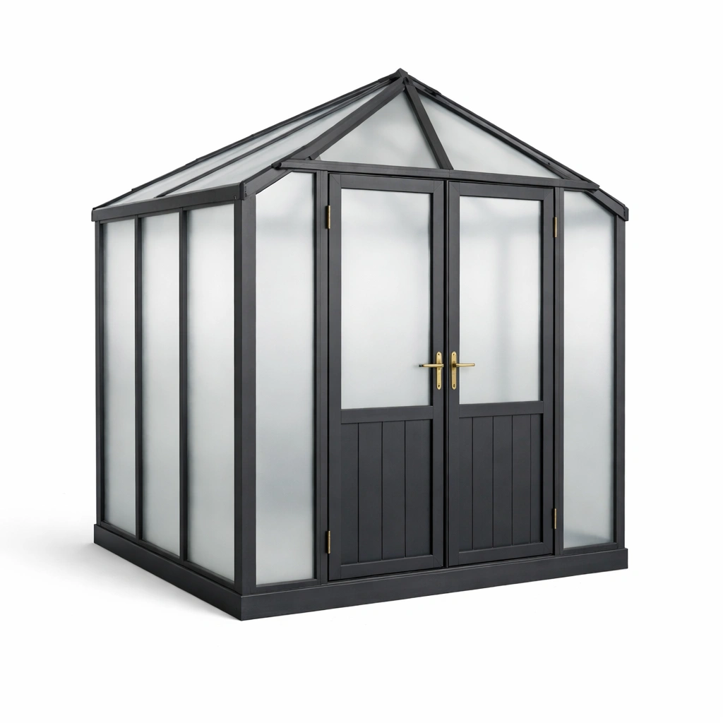 Invernadero de aluminio y paneles de policarbonato negro